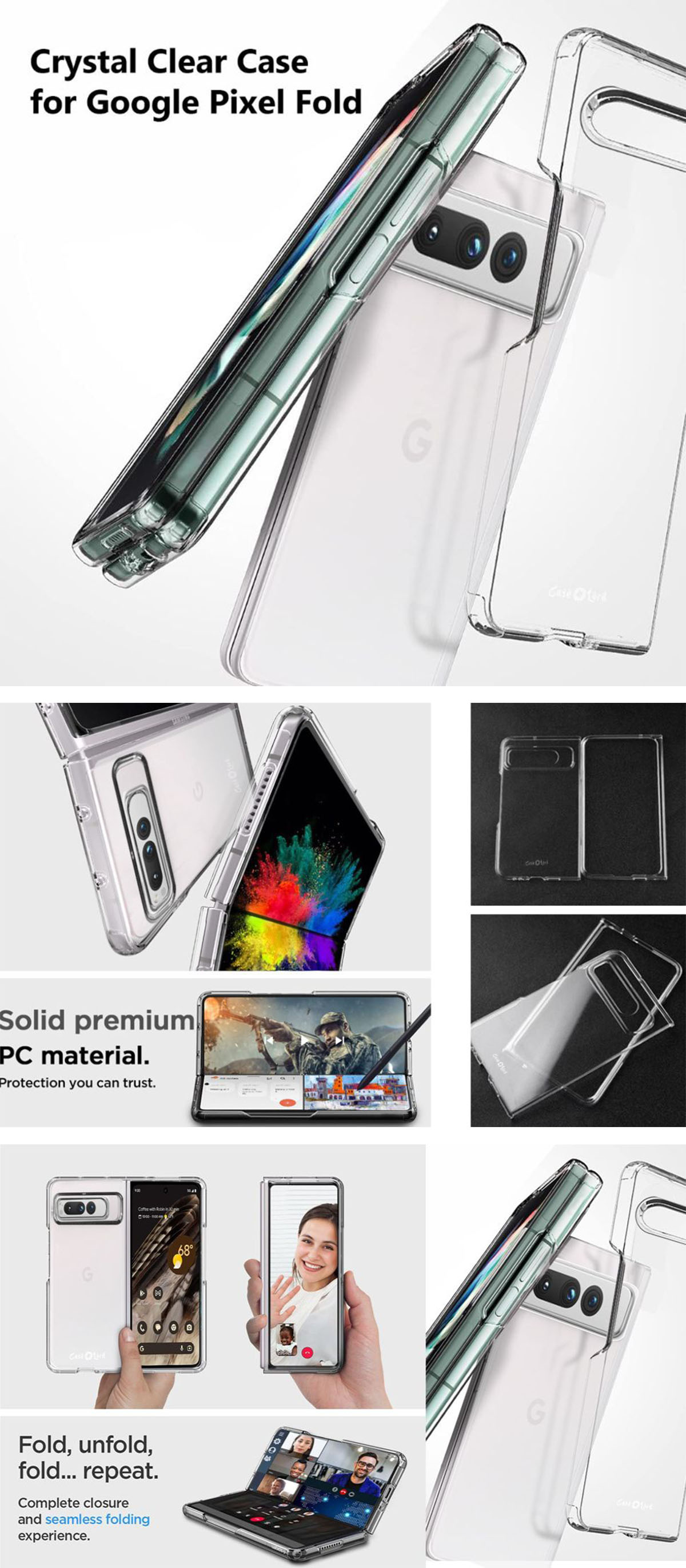 Crystal Clear Design: Lets your Pixel Fold’s true color and design shine through.