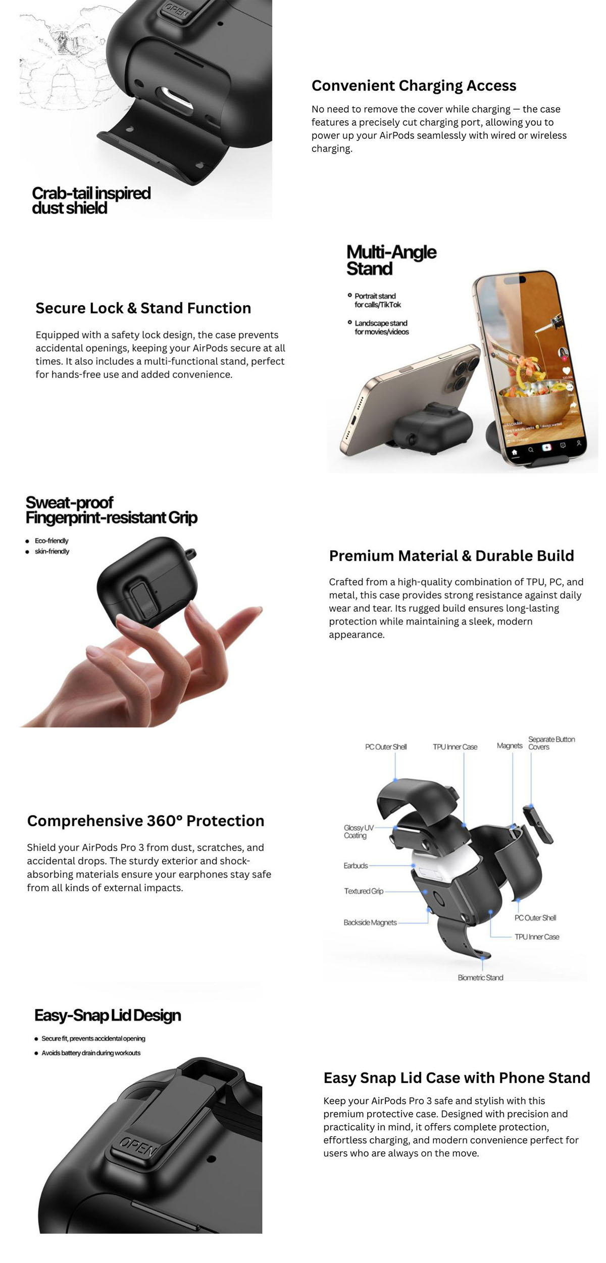 Duxducis Easy Snap Lid Case with Phone Stand for Apple Airpods Pro 3