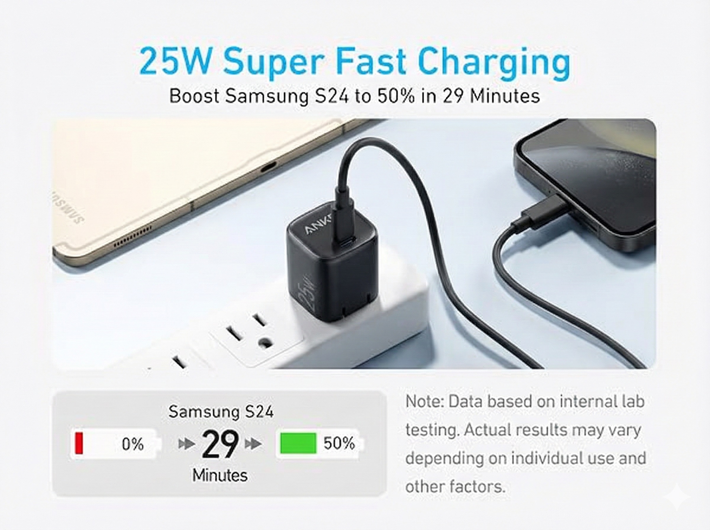 Power your Samsung and iPhone devices at top speed with the Anker 312 Charger (Ace 2) 25W.