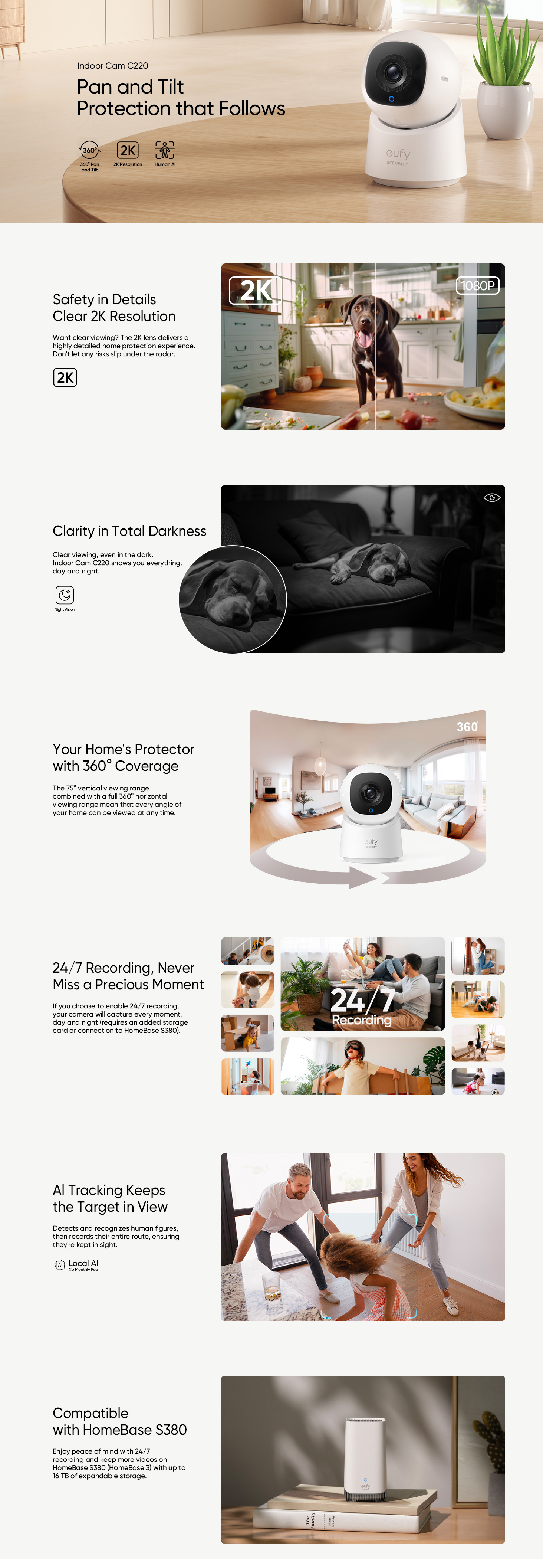 Equipped with advanced on-device AI, the camera can accurately detect motion and identify human figures. It tracks movement intelligently and records the entire path, so you always know exactly what’s happening in your space.