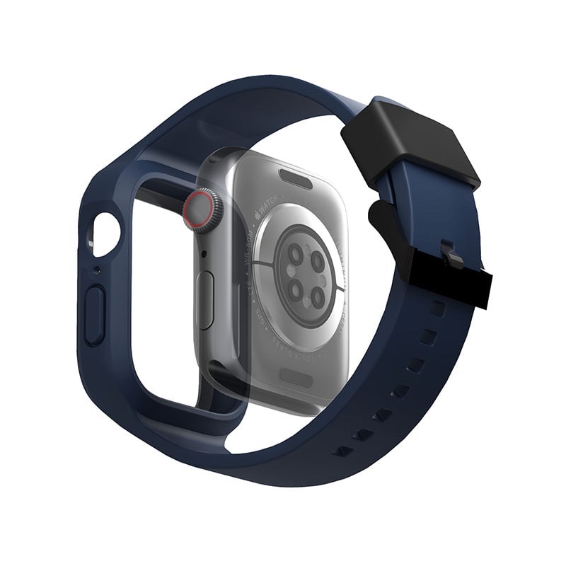 UNIQ MONOS 2-IN-1 Apple Watch Strap With Hybrid Case for Series 4/5/6/7/8/9 & SE/SE2 45/44MM – Marine (Blue)