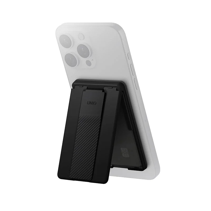 Uniq Heldro ID Magnetic Card Holder with Flex Hand Grip & Stand for Phones - Midnight Black