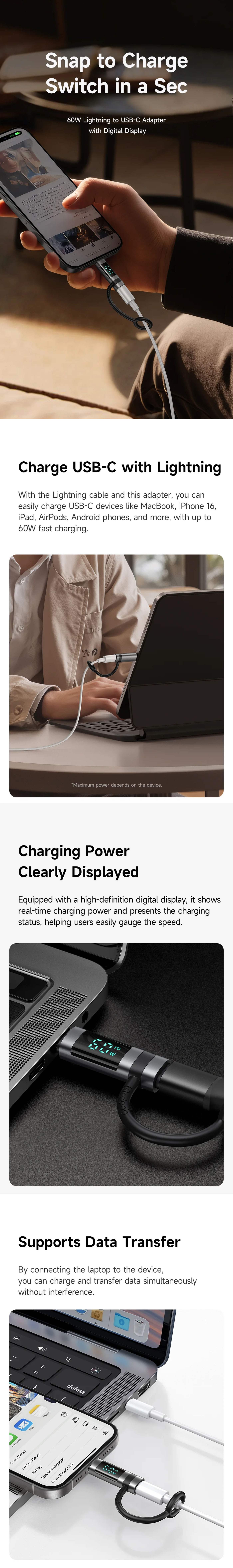 Fast Charging & Data Transfer: Supports up to 60W fast charging and high-speed data transmission for your devices.