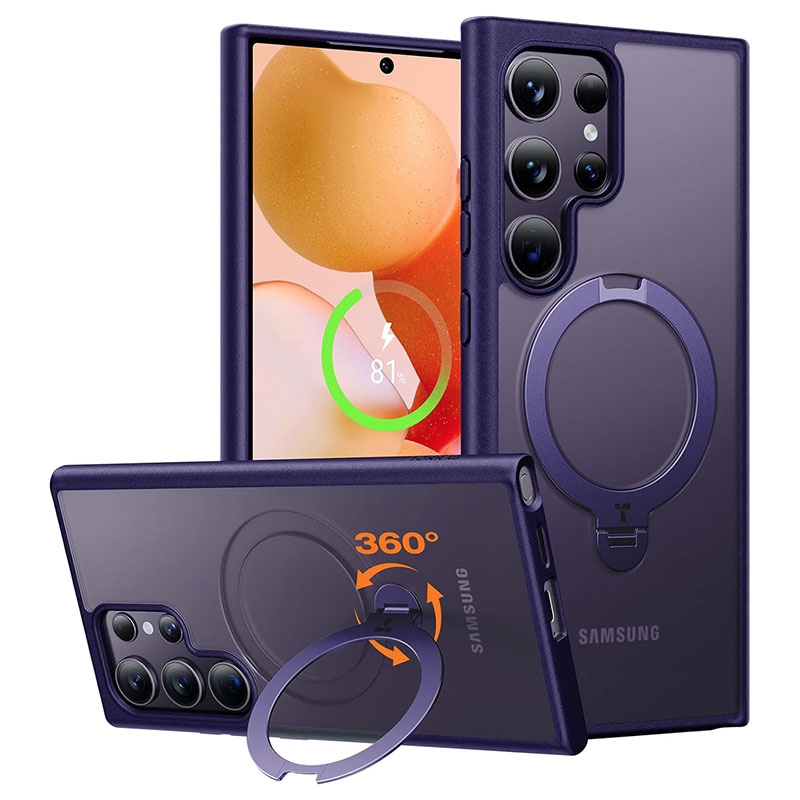 Torras UPRO Ostand Spin Series Magsafe Compatible Phone Case for Samsung Galaxy S24 Ultra – Dark Purple
