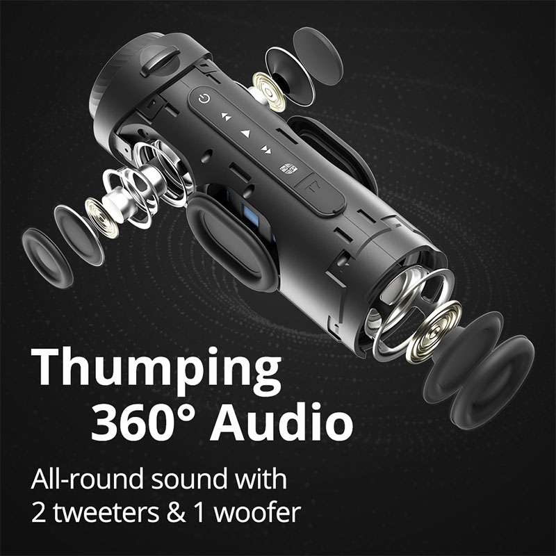 The T7 supports wireless stereo pairing, meaning you can connect two T7 speakers together for an even bigger, room-filling soundstage—perfect for parties or outdoor gatherings. Designed for on-the-go use, the speaker is IPX7 waterproof, making it safe from splashes, rain, or even full submersion. Its portable cylindrical design not only makes it easy to carry but also distributes sound evenly in all directions.