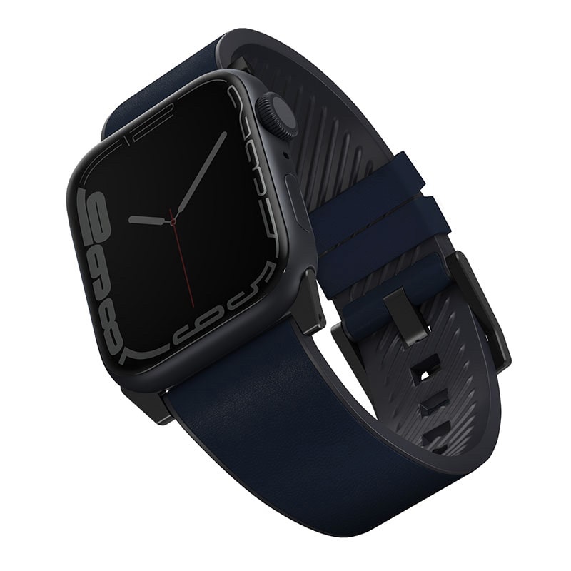 UNIQ STRADEN Genuine Leather Hybrid Apple Watch Strap for Series 1-10, SE/SE2 & Ultra/2 (49/45/44/46MM) – Prussian (Blue)