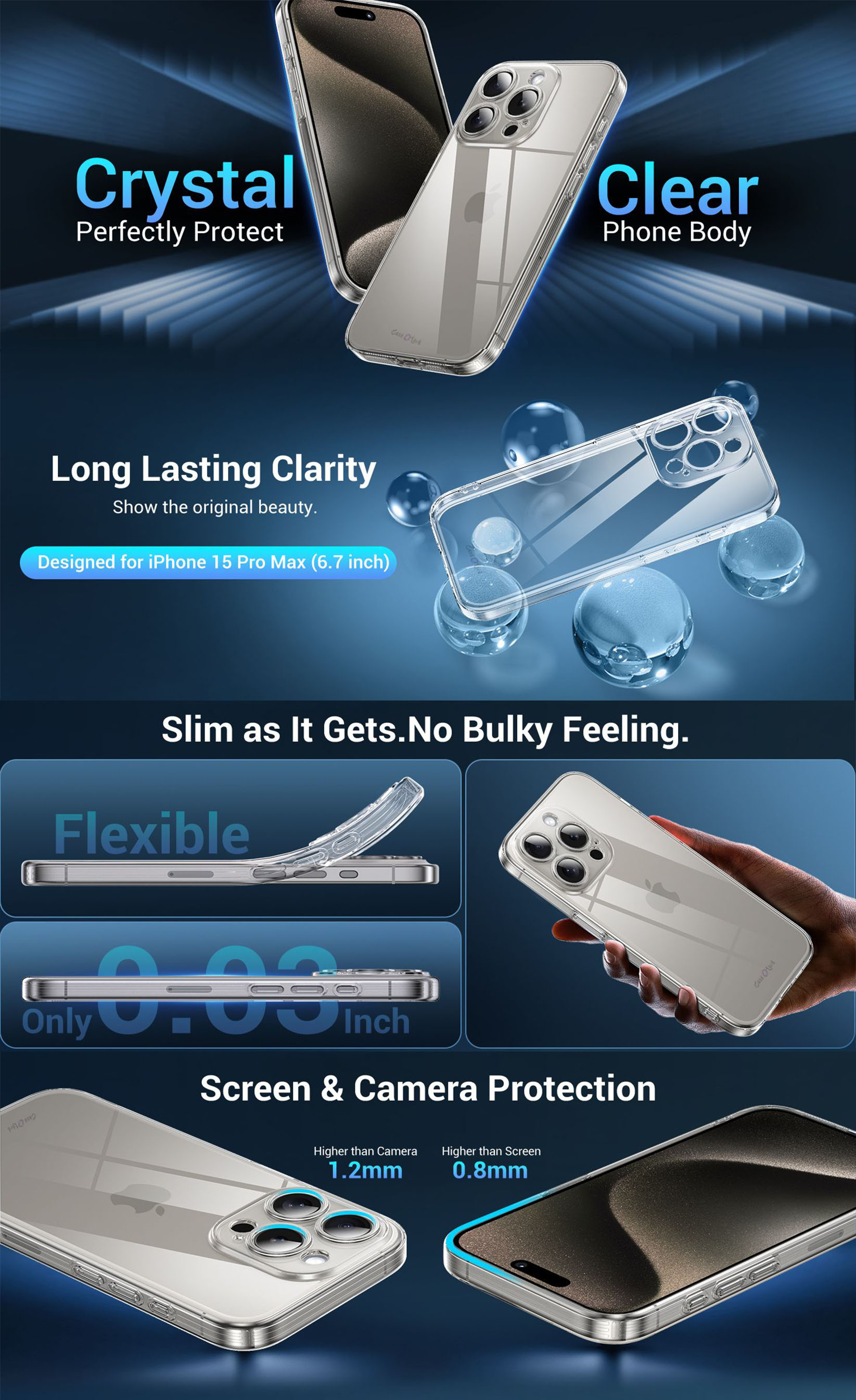 Case Lord Ultra-Thin Clear Transparent TPU Case for iPhone 15 / 15 Pro / 15 Pro Max offers a featherlight, slim fit that highlights your iPhone’s original design. Built with flexible TPU, it protects against everyday scratches and scuffs without adding bulk—ideal for users who want slim transparent cases in Pakistan.