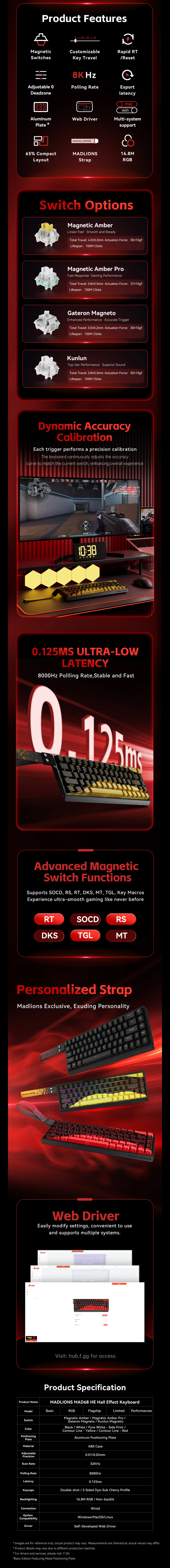 Dominate your games with the MADLIONS MAD68 HE Magnetic Switch Keyboard, featuring a highly efficient 65% layout with dedicated arrow keys. Built with an incredible 8000Hz polling rate and a 0.04mm Rapid Trigger, this premium keyboard delivers zero-delay precision and long-lasting durability for competitive Pakistani gamers.