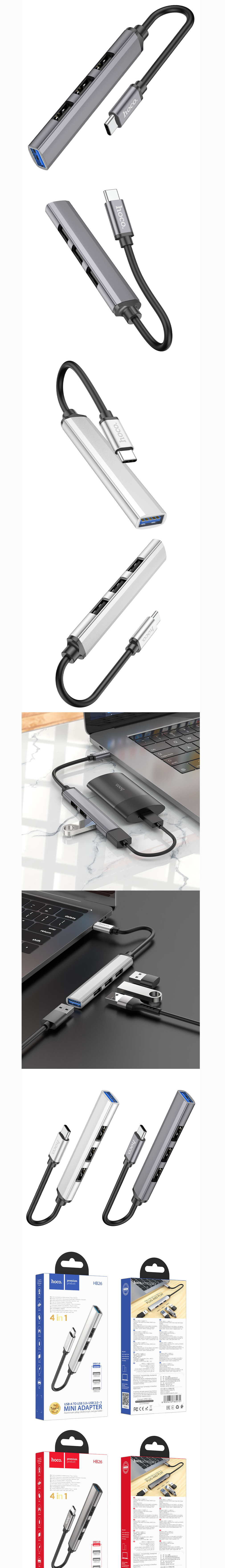 Instantly expand your device's connectivity with the Hoco HB26 4-in-1 Type-C Hub. Designed for seamless multitasking, it transforms a single Type-C port into one high-speed USB 3.0 and three USB 2.0 ports. Perfect for laptops, tablets, and OTG-enabled smartphones in Pakistan seeking a durable, budget-friendly port expansion.