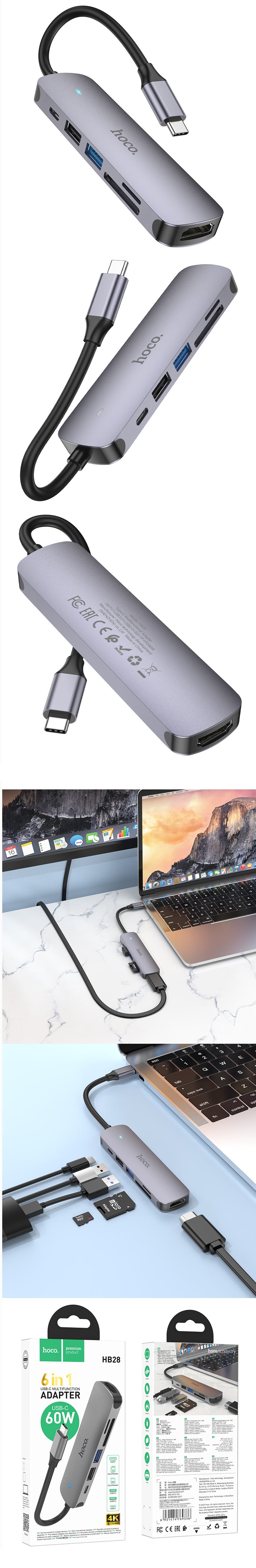 Hoco 6-in-1 Multifunction Type-C Hub (HDMI + PD + USB + SD/TF) - HB28