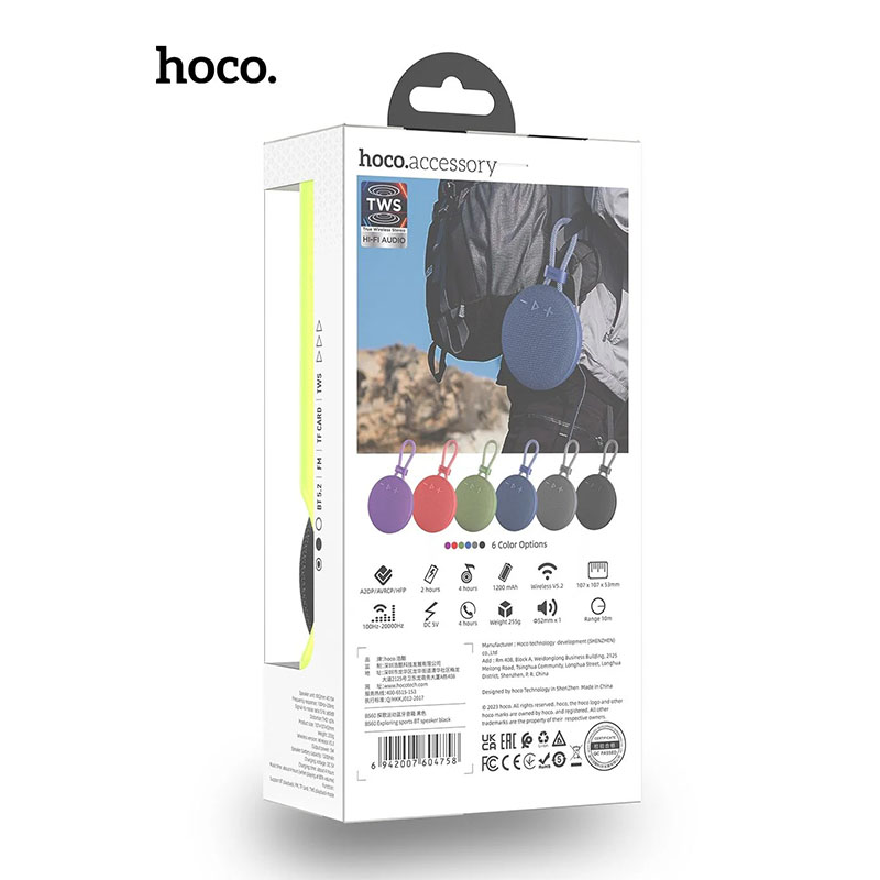 The HOCO BS60 Exploring Sports Bluetooth Speaker is a compact, lightweight, and powerful wireless speaker designed for music lovers who enjoy quality sound on the go. With its modern design and durable build, it is perfect for indoor use, outdoor adventures, travel, and sports activities.