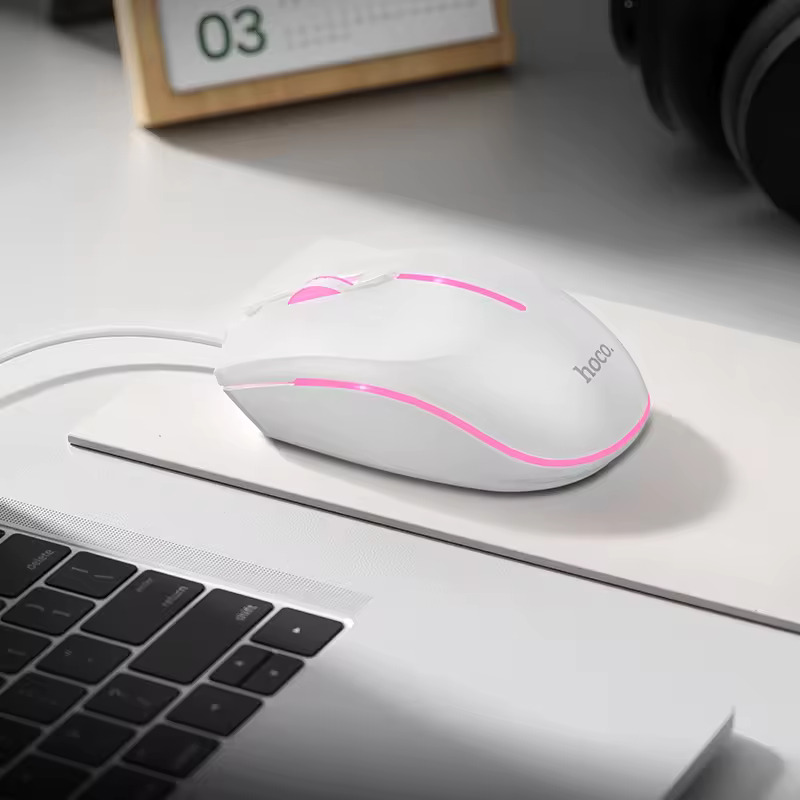 Buy Hoco LumaGlow Ergonomic RGB Gaming Mouse in Pakistan with 2400 DPI, smooth wired performance, and 7-color RGB lights—perfect for comfortable and stylish gaming.