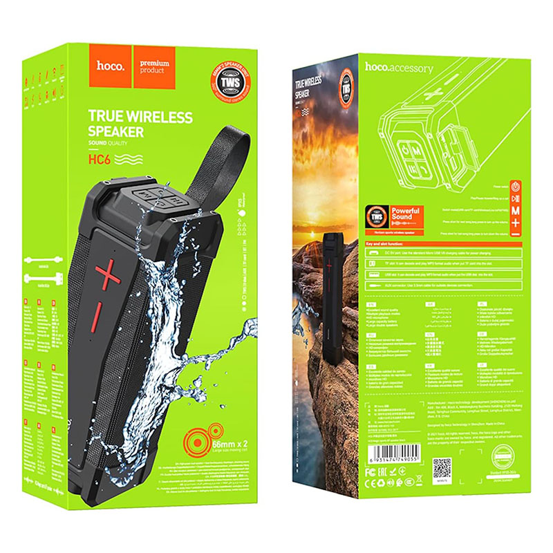 Buy Hoco Magic Sports Wireless Speaker HC6 in Pakistan with powerful bass, 4000mAh battery, Bluetooth 5.0, 6-hour playtime, and multiple modes including FM, TF card, USB, AUX, and TWS for a rich and portable music experience.