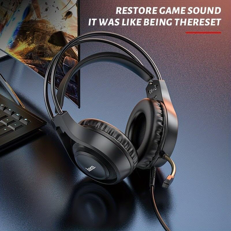 Upgrade your gaming setup with the Hoco Tiger Gaming Wired Headset with 3.5mm Jack in Pakistan. Enjoy powerful stereo sound, deep bass, and a clear HD microphone for smooth communication. Designed for comfort with a 1.8m durable cable, perfect for PC, mobile, and console gaming.