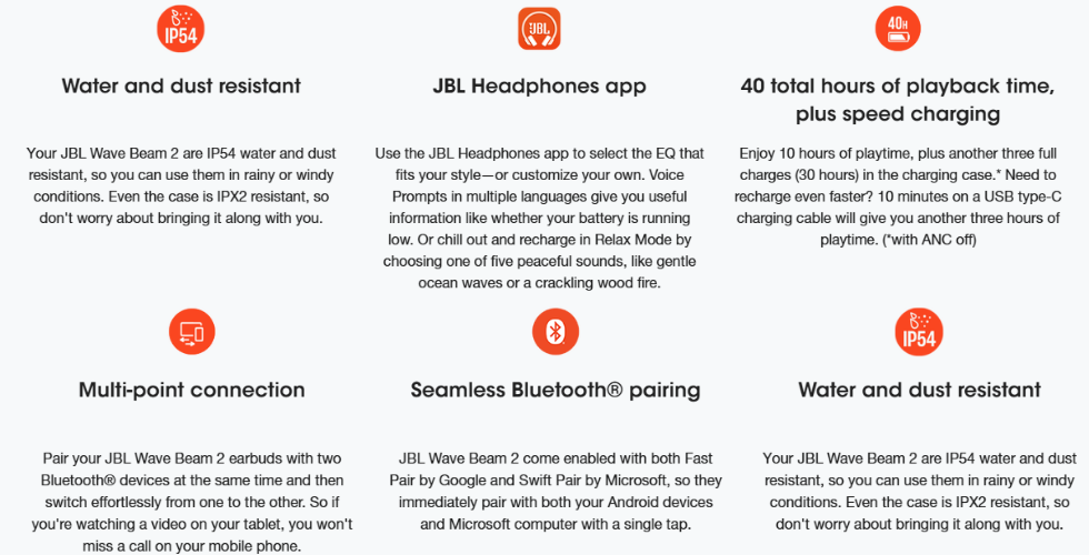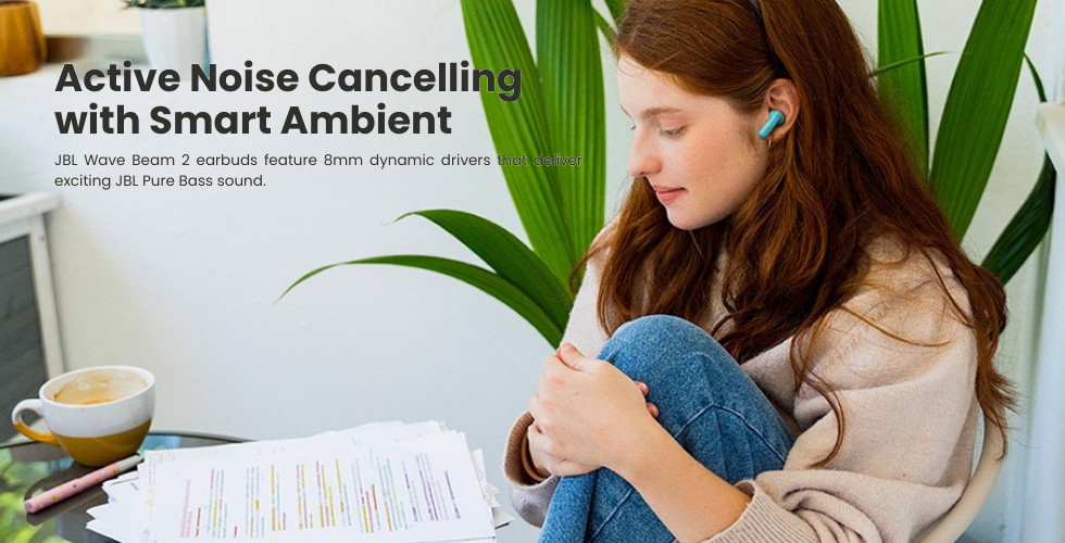Experience the legendary JBL Pure Bass sound combined with advanced Active Noise Cancelling in the JBL Wave Beam 2. With an incredible 40-hour battery life and an IP54 water-resistant build, these earbuds are engineered to power you through the longest days without missing a beat.