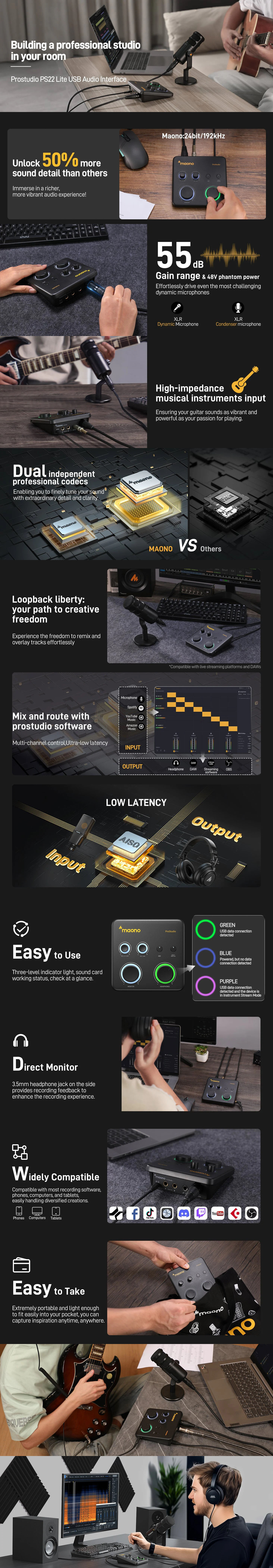 Maono PS22 Lite Compact Audio Interface with Low Latency