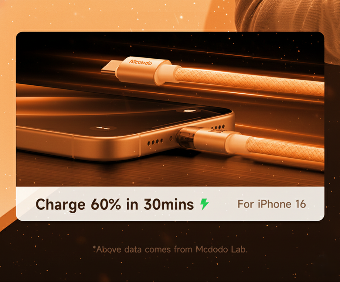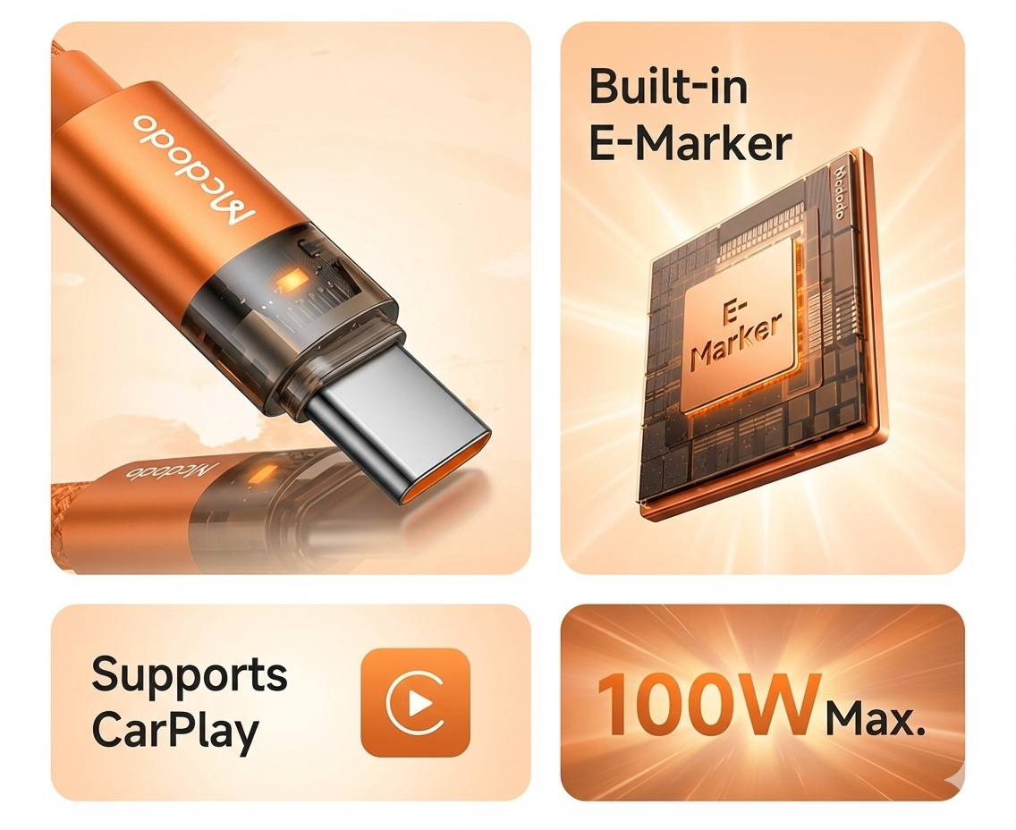 The Mcdodo Cab Luma 100W USB-C to USB-C Cable (1.2m) delivers ultra-fast charging with a bold Cosmic Orange finish and a smart LED power indicator. Made with premium nylon braiding and reinforced connectors, it’s perfect for fast-charging smartphones, tablets, laptops, and more — durable, stylish, and built for everyday performance.