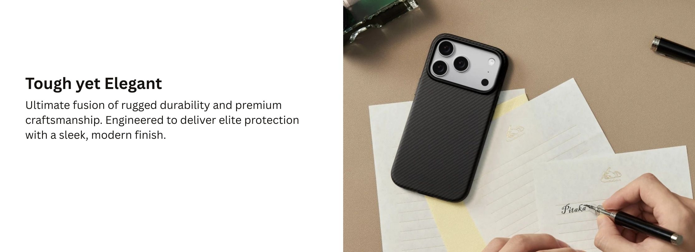 The Pitaka UltraGuard Protective Case for iPhone 17 Pro Max is designed for users who want maximum protection without sacrificing style. Built with aerospace-grade aramid fiber and PITAKA’s advanced Orca Resin, this case delivers elite durability in a slim, refined form.