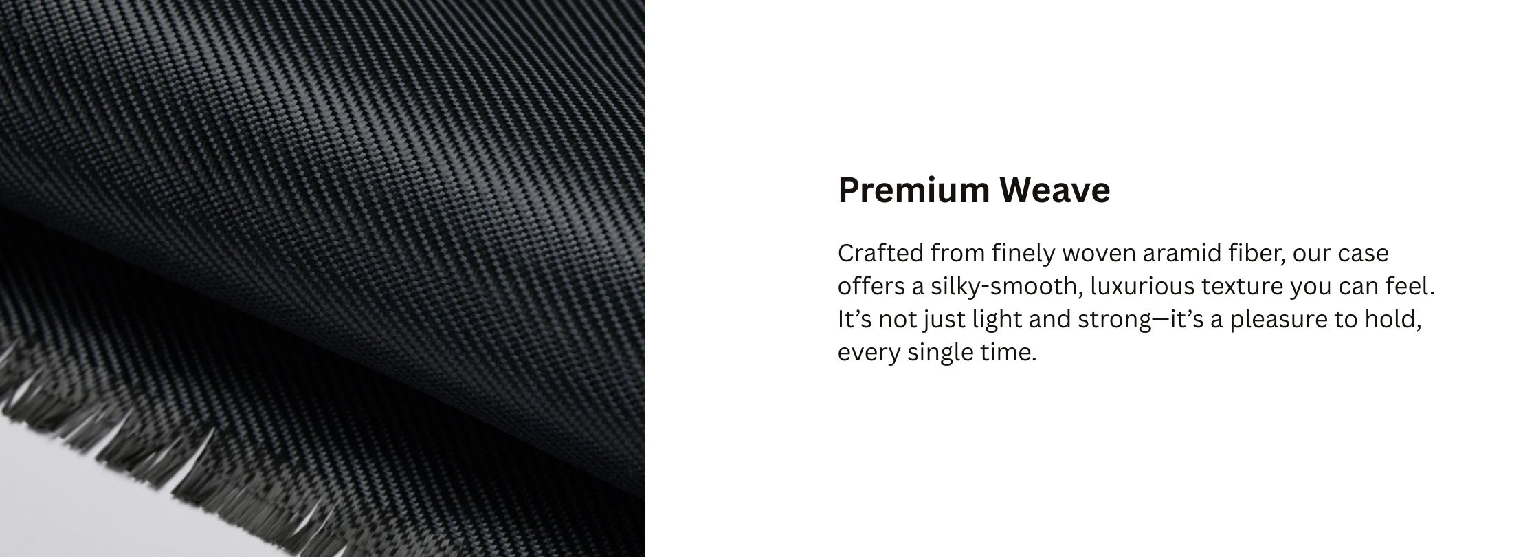 The finely woven aramid fiber delivers a silky-smooth, luxurious feel in hand. Lightweight yet incredibly strong, the case offers comfort, grip, and elegance you’ll appreciate every day.