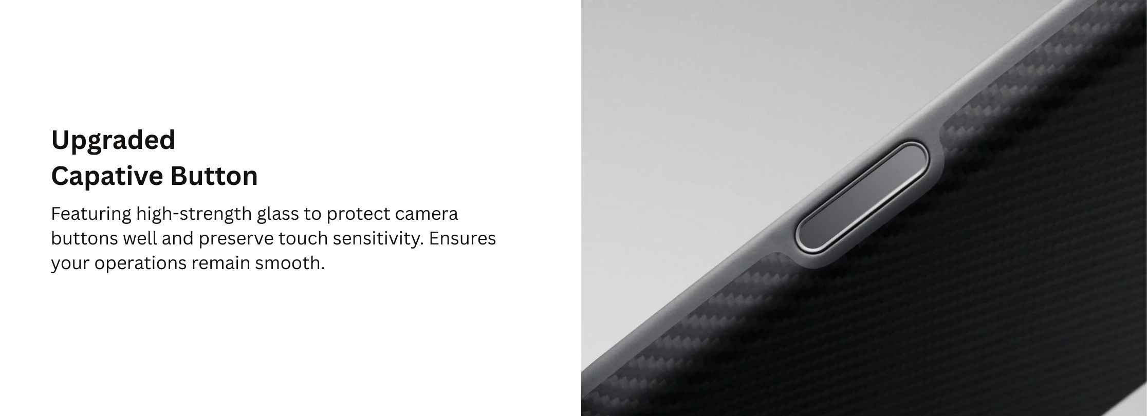 Equipped with a high-strength glass capacitive button, the case protects camera controls while maintaining precise touch sensitivity so every press feels smooth and responsive.