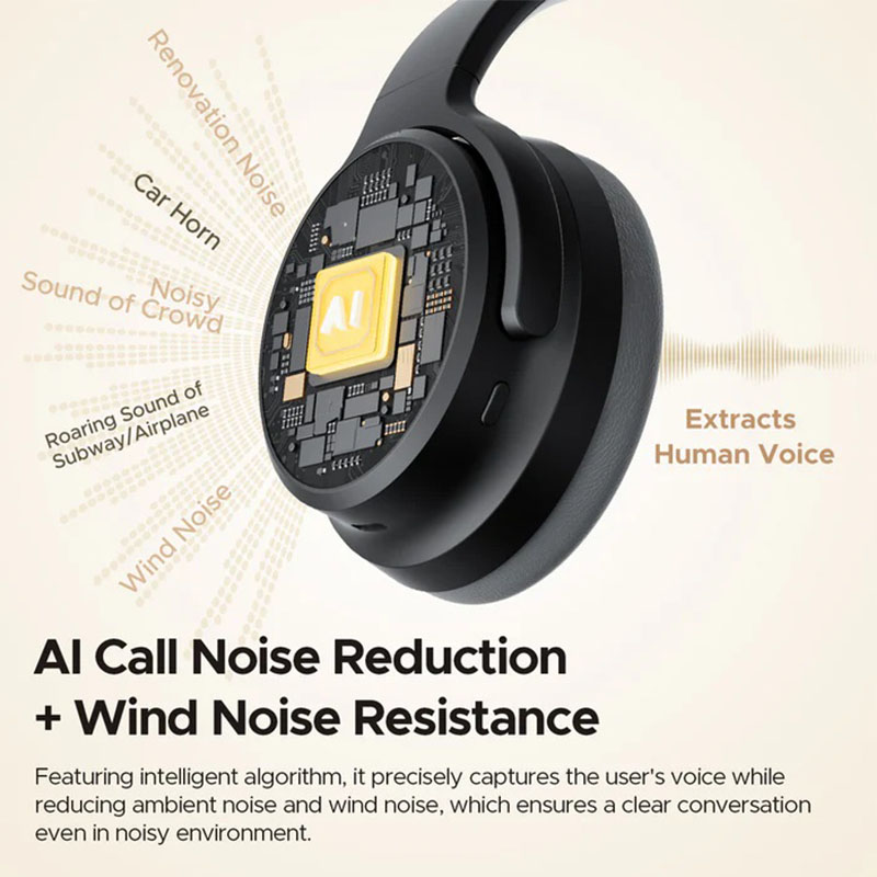 Soft memory foam ear cushions wrapped in protein leather provide breathable, pressure-free comfort for long listening sessions. The headband evenly distributes weight, ensuring “zero pressure” wear. Foldable design makes it travel-friendly for business trips, commutes, or vacations.