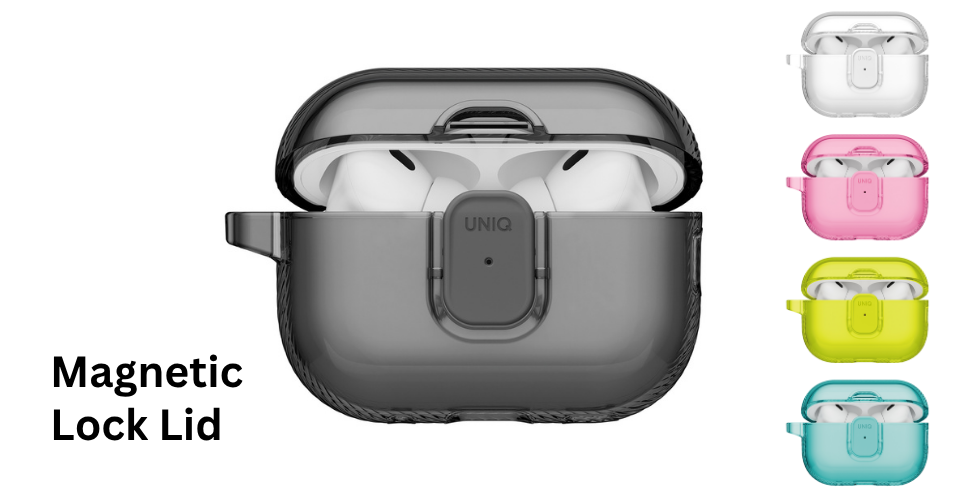 AirPods Pro 3rd Gen experience with the Uniq Glase Pro Lock Case, crafted with a magnetic lid closure and transparent hybrid shell that showcases your AirPods while keeping them secure. Built for protection and elegance, it’s the perfect everyday companion for modern users.