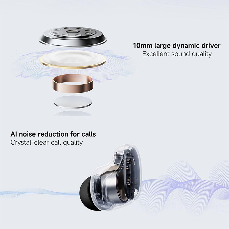 Each earbud weighs only 3.6g, making them incredibly light and comfortable for all-day use. The sleek charging case complements the minimalist design while ensuring easy portability wherever you go.
